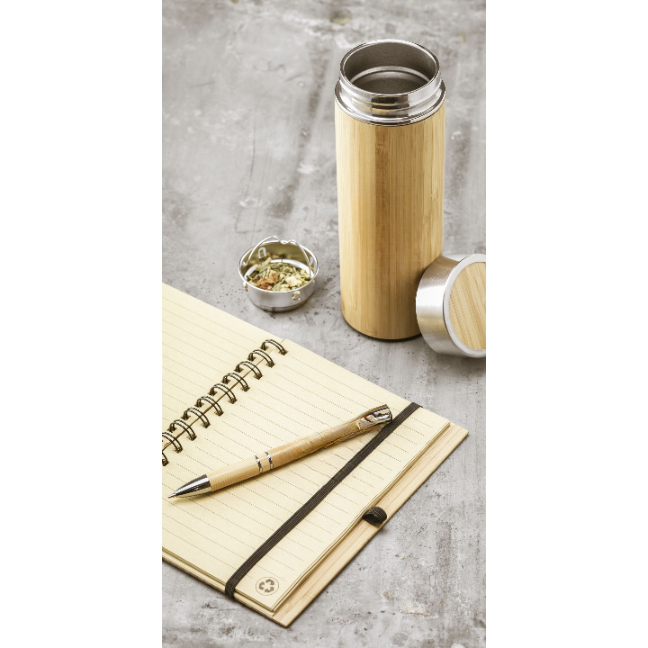 Blue or black ink ballpoint pen with a nice bamboo barrel, chrome plated rings and metal clip/push button. This pen is also known as the Electra Bamboo pen.