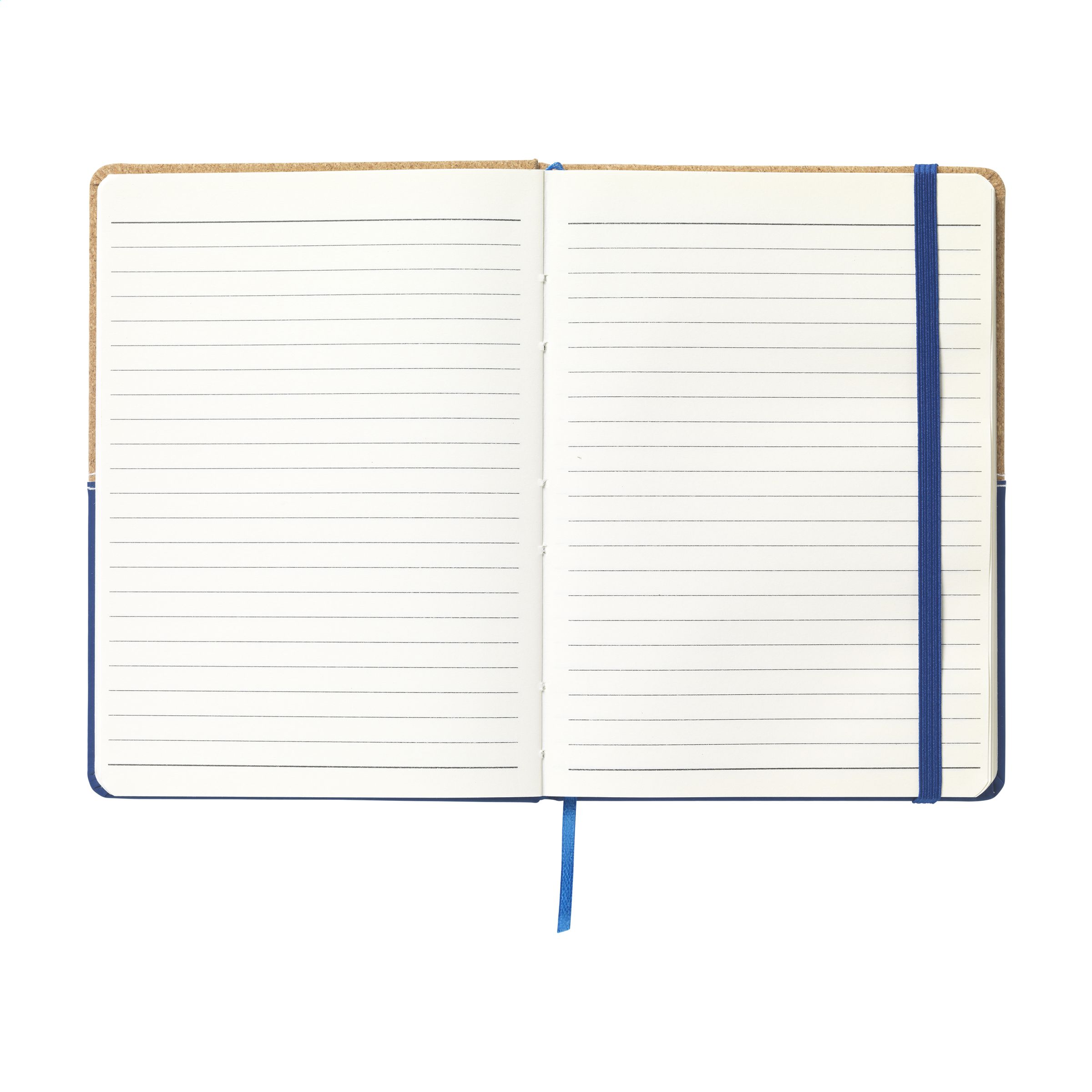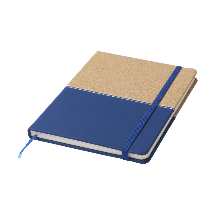 Duo style notebook of cork and imitation leather in handy and practical version with approx. 72 sheets of cream-coloured, lined paper and elastic closure.