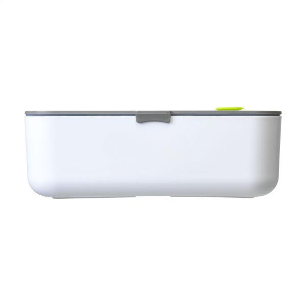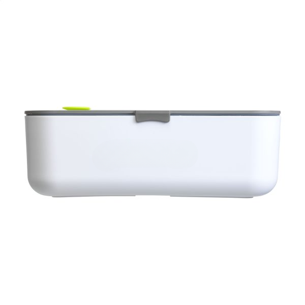 Luxury lunchbox made of high-quality plastic material. The lid fits perfectly due to the silicon sealing ring and extra snap closure. With removable separator and ventilation opening. The snap closure can be used as a telephone holder. This box can be placed in the fridge and can therefore also be used as an air-tight chiller box. Suitable for use in microwave. This product is dishwasher-safe, but placing it in the dishwasher is discouraged in order to maintain the print.