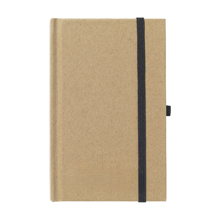 Environmentally friendly, A6 size notebook made of recycled material. With approx. 80 sheets of cream-coloured, lined paper, handy pen loop and elastic closure.