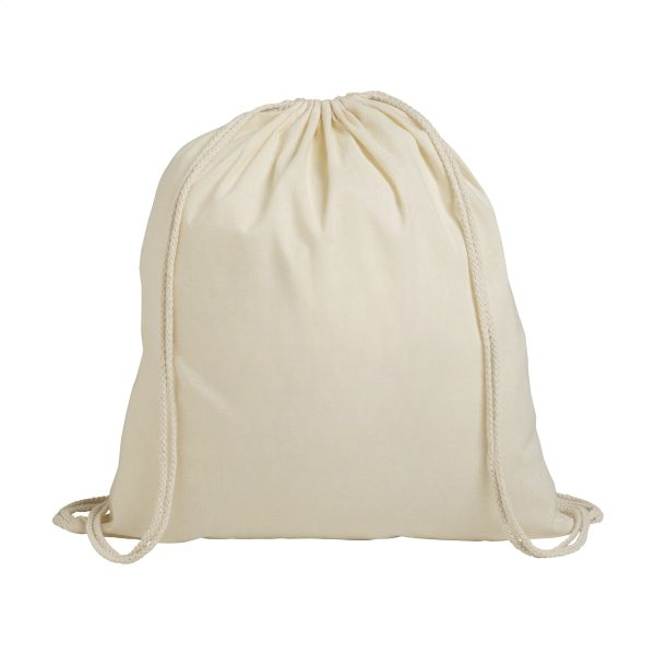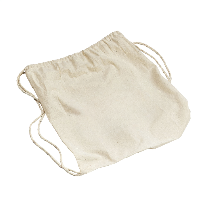 100% cotton (100 g/m²) backpack. With drawstring. Capacity approx. 8 litres.
