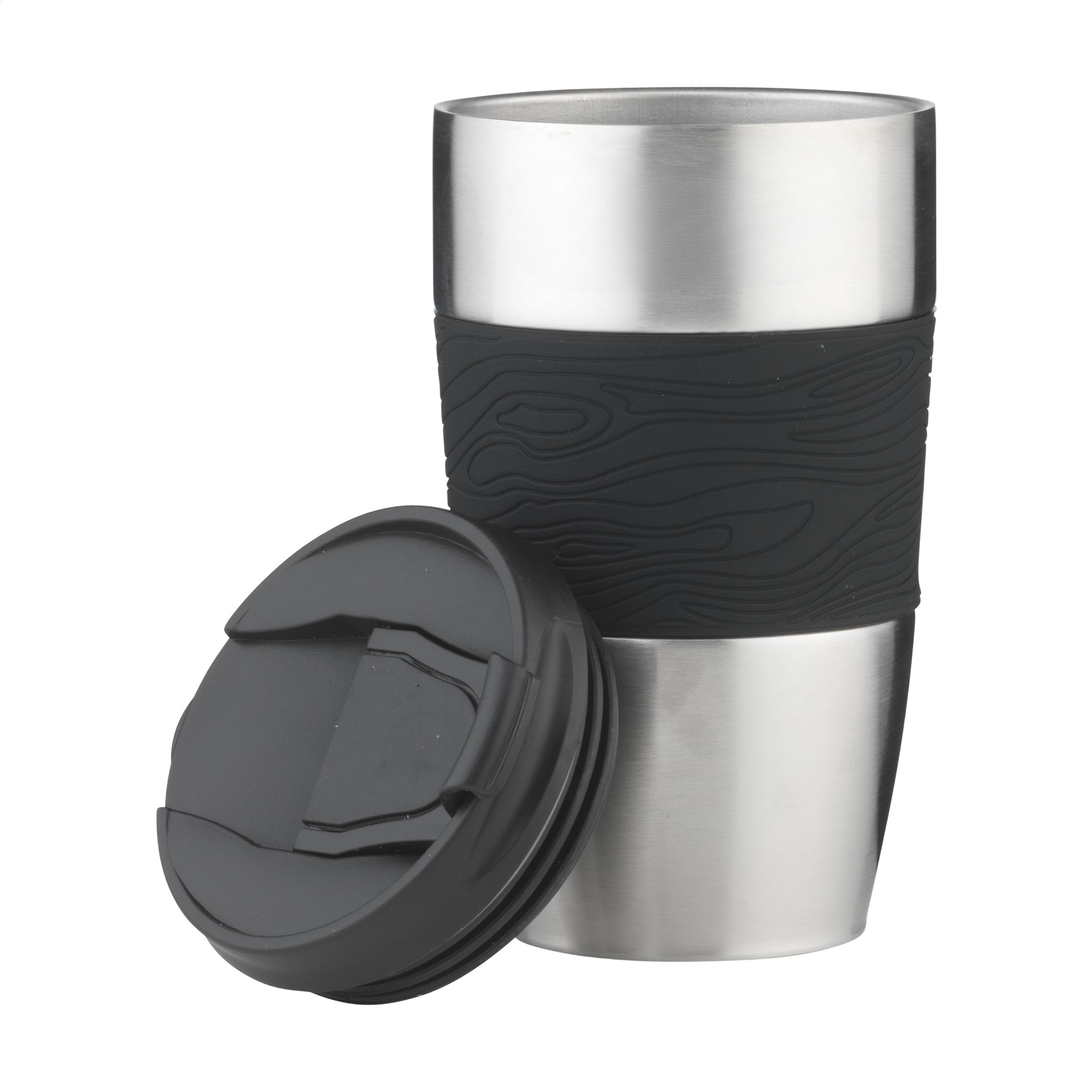 Double-walled, leak-proof stainless steel thermo cup with screw cap, click opening, rubber grip with outstanding design and non-slip base. Capacity 415 ml. Each piece in a box.